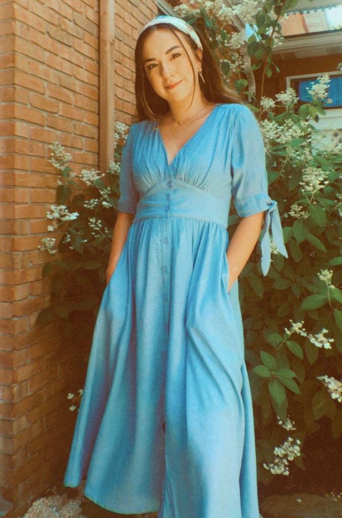 this dress is my personal favorite and it’s from a cute, newport beach, family-owned boutique called xomandysue. it gives off big little women vibes, so i finally feel like i can live my jo march fantasy in this tea-length dress.